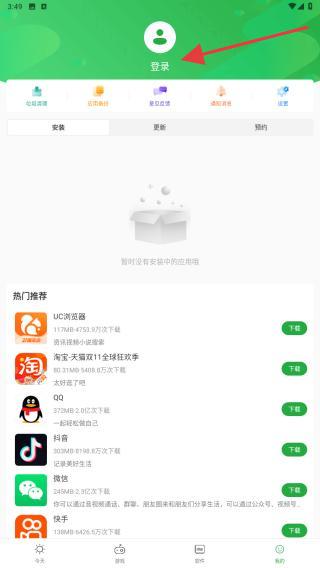 2、进入个人页面后,用户需点击顶部的登录按钮即可弹出相对的功能。