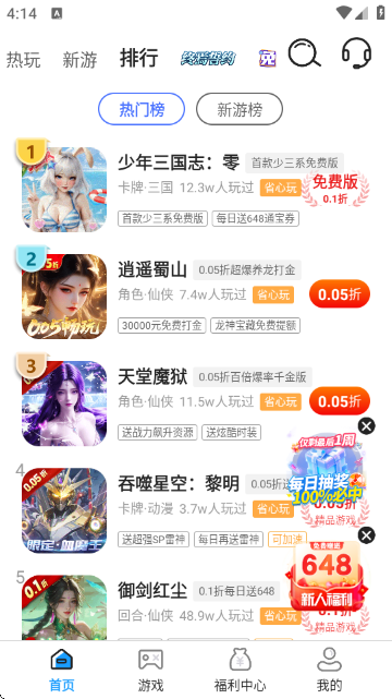 5、排行可助力你轻松了解全网游戏的流行热度。