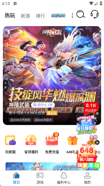 3、进入到软件首页,如图所示;这里能为用户提供众多热门游戏推荐和核心功能入口;