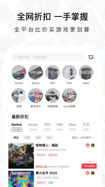 Jump是全球千万玩家好评推荐的主机和PC游戏比价神器,目前已支持Switch&Steam平台,PS5/PS4/xbox/Epic等平台即将上线。抢先下载体验,3A大作半价入手,史低游戏天天有,一年省出一部iPhone12!