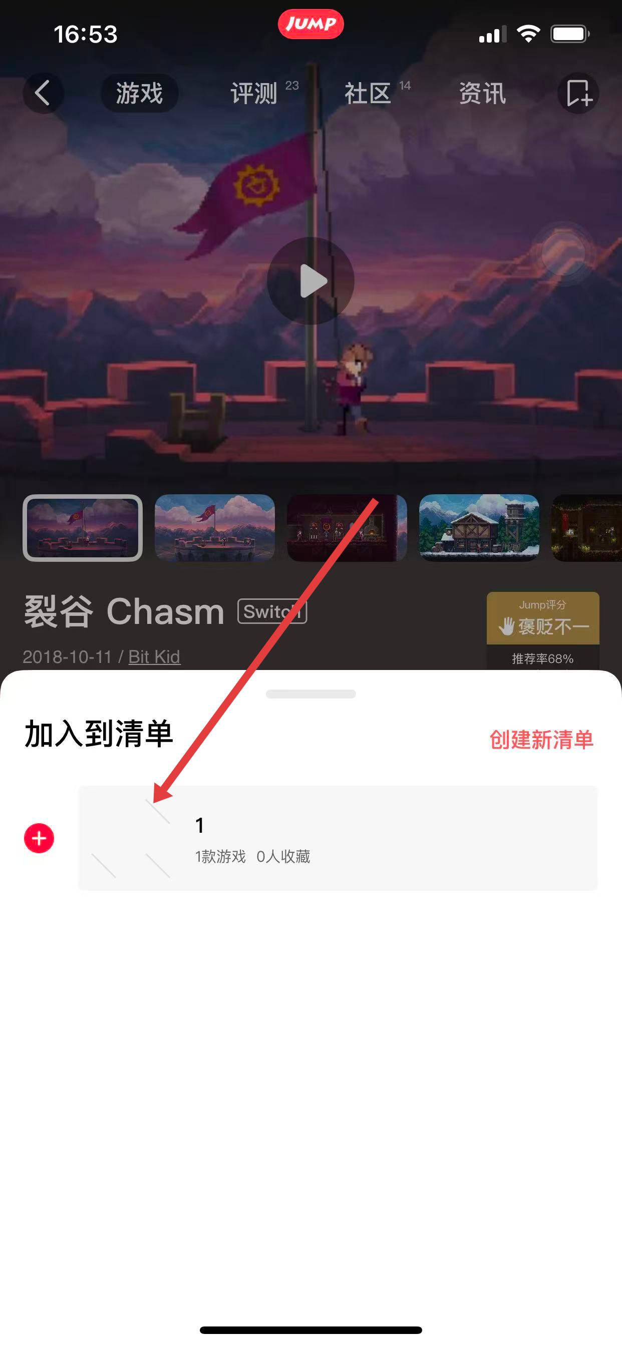 3、弹出加入到清单的界面,可以选择已有的清单,游戏就会被添加到对应的清单中。