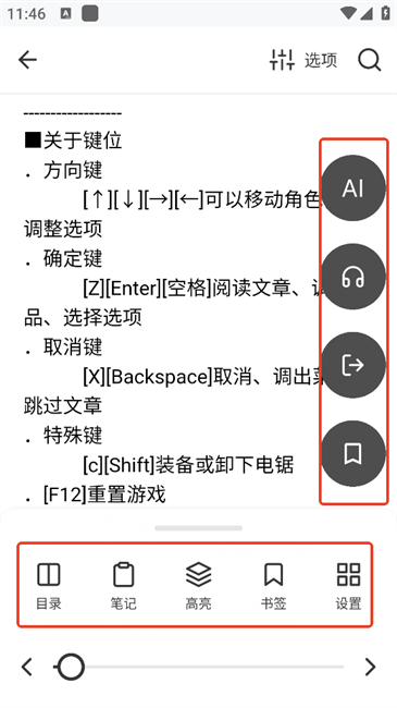 5.在阅读页面点击屏幕还能够唤起各项功能,可根据需要自行设置