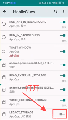 11、找到最底下的LEGACY_STORAGE也就算旧版文件储存权限