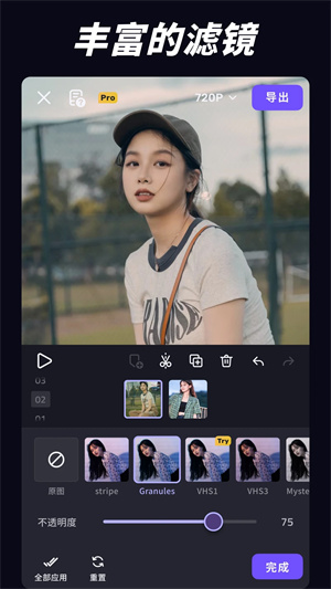 自定义视频分辨率:以720p或1080p高清画质导出视频