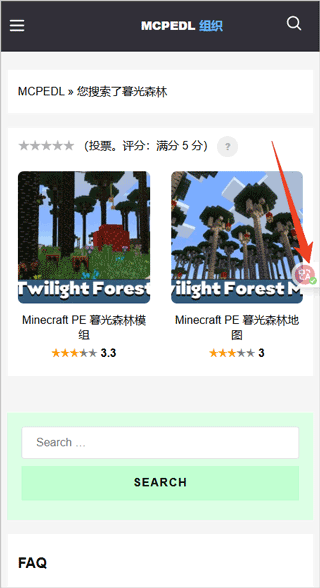 1、玩家可以直接通过MCPEDL软件提供的搜索功能,直接输入模组名称来搜索,例如暮色森林模组的英文名称:Twilight Forest来进行搜索