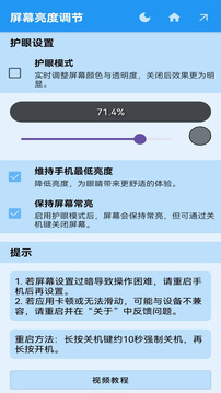 屏幕亮度调节是一款保护视力的软件,软件能够自由护眼,还能去除蓝光,将色温和亮度搭配,有效缓解用眼疲劳,系统还有自动调节的功能,能够根据周围环境光线,自动匹配合适的亮度,不需要手动操作,在不同情境下,可以过滤不同的光线,软件有详细的视频教程可以看,自动启用护眼效果,软件还能针对电影爱好者,提供增强画质和舒适观影的功能。