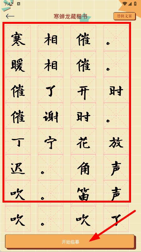 3、查看练字内容后,点击开始临摹,开始书法练习。