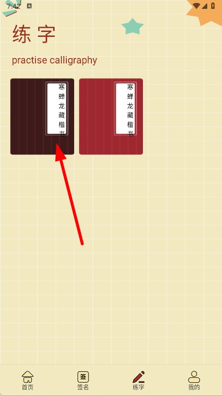2、在练字页,选择字帖,进入字帖详情页。