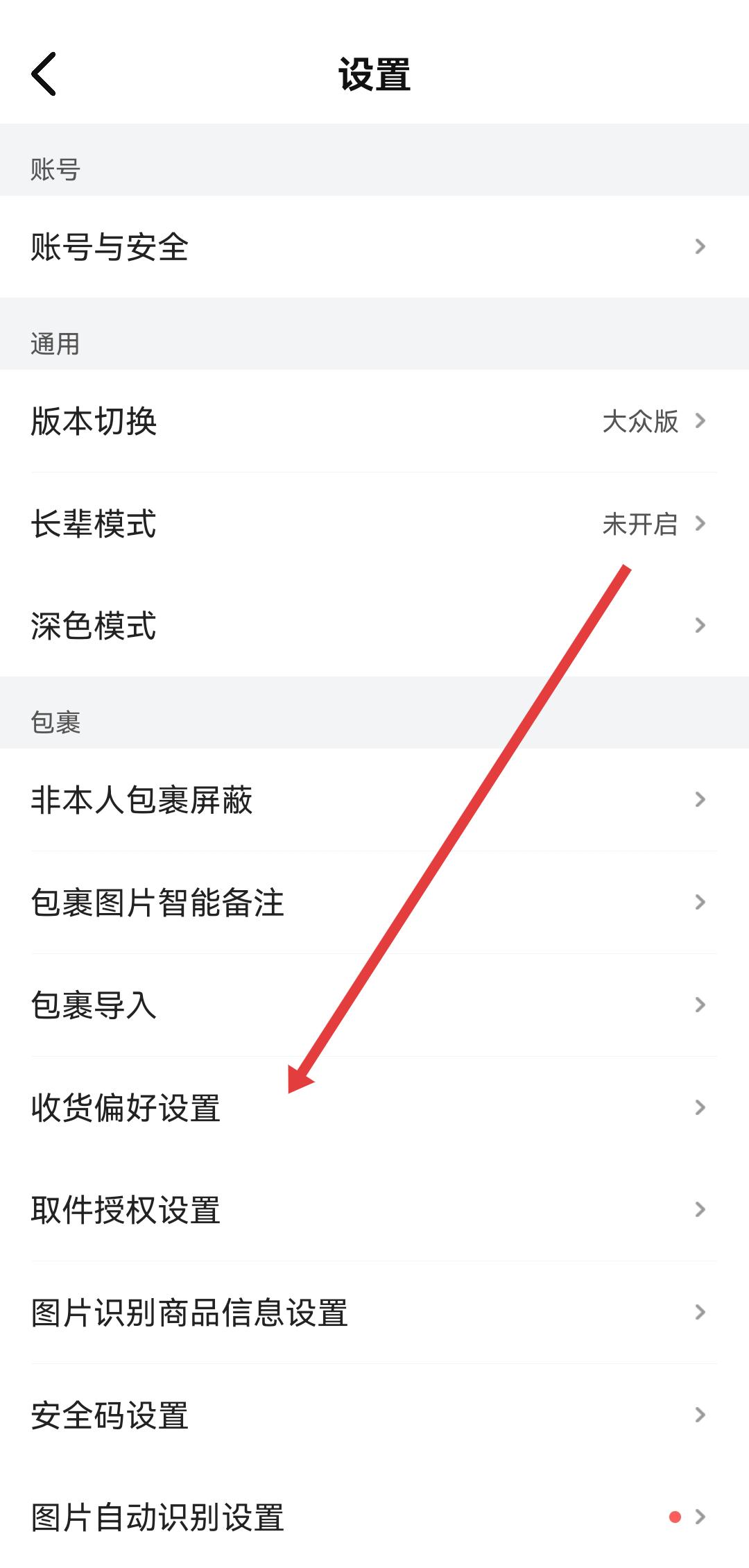 2、找到并且点击收货偏好设置的选项后,我们需要再次点击下方的菜鸟智能柜旁边显示的未设置按钮。