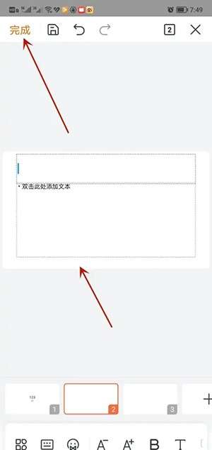 5、模板添加完毕后,双击文本框即可输入文案、图片等内容。制作完毕后,点击完成按钮进行保存即可。