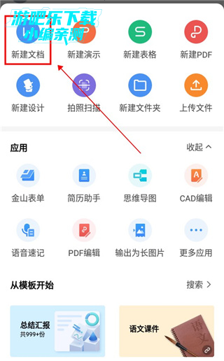 3、如果是需要空白文档,就点击“新建空白;要使用模板的话,就选择“模版文档”;
