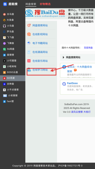 2、在云祥盘页面,找到在线学习网站板块,点击进入学习资源集合页。