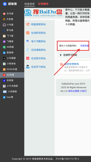 1、打开超能搜网站,左侧导航选择so百度分类,进入对应资源区。