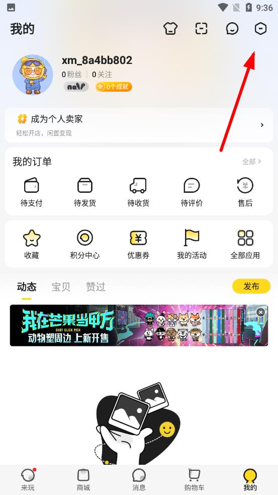 1、打开小芒app,点击底部导航栏的我的,进入个人页面,点击右上角的设置图标。