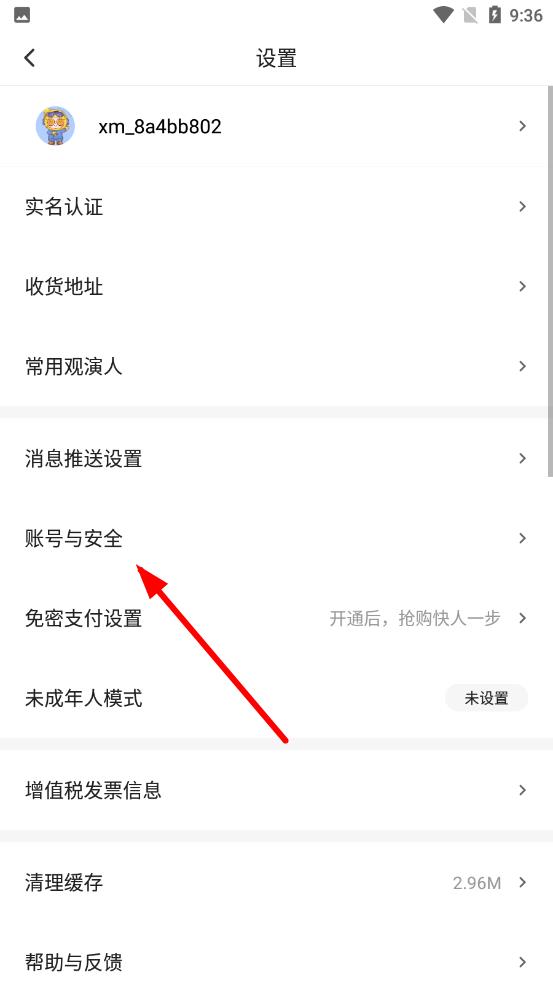 2、在设置页面中,找到并点击账号与安全选项,进入账号安全设置界面。