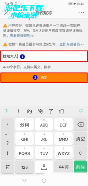 6、最后,写入新的昵称,再点击“确定”就可以了。