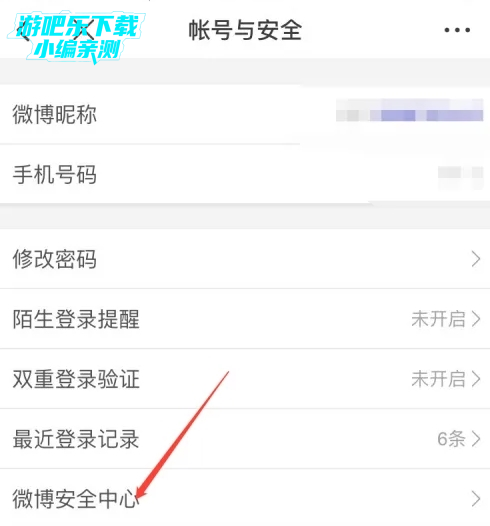 进入设置界面,选择帐号与安全选项,然后选择【微博安全中心】。