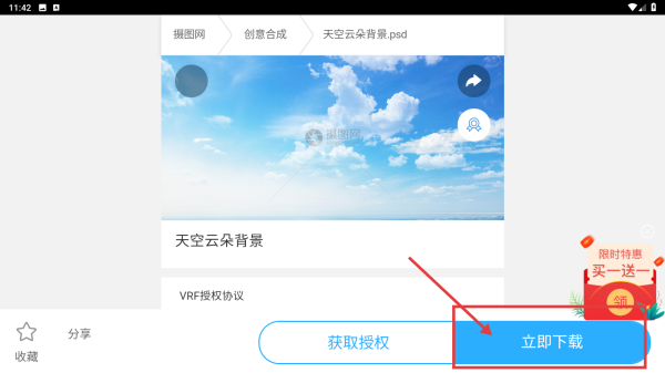 2、在分类页,选择目标素材如天空云朵背景图 ,进入素材详情页。