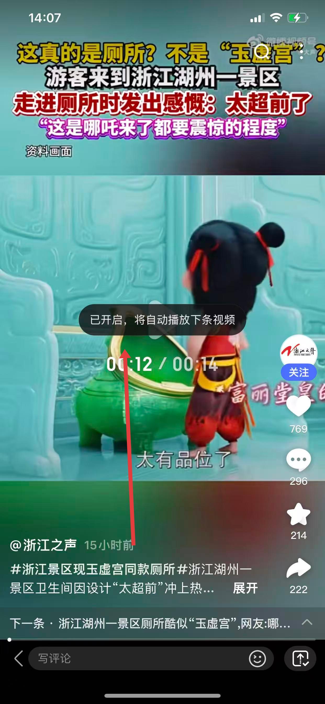4、开启后,当当前视频播放完毕,会自动播放下一条视频,页面会有已开启,将自动播放下条视频的提示。