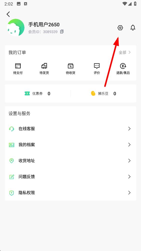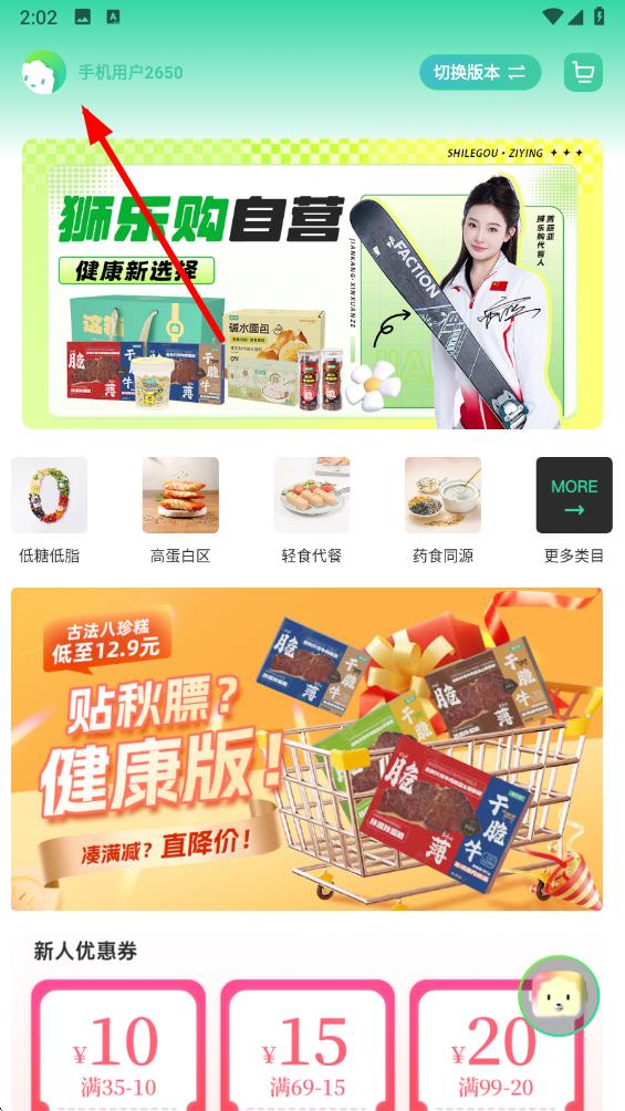 1、打开狮乐购app,点击左上角头像区域,进入个人相关信息管理界面。