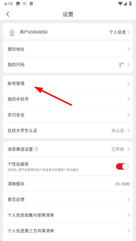 3、在账号管理界面,找到并点击注销账号选项,按照后续页面提示完成相关操作,即可注销网易严选app账号。