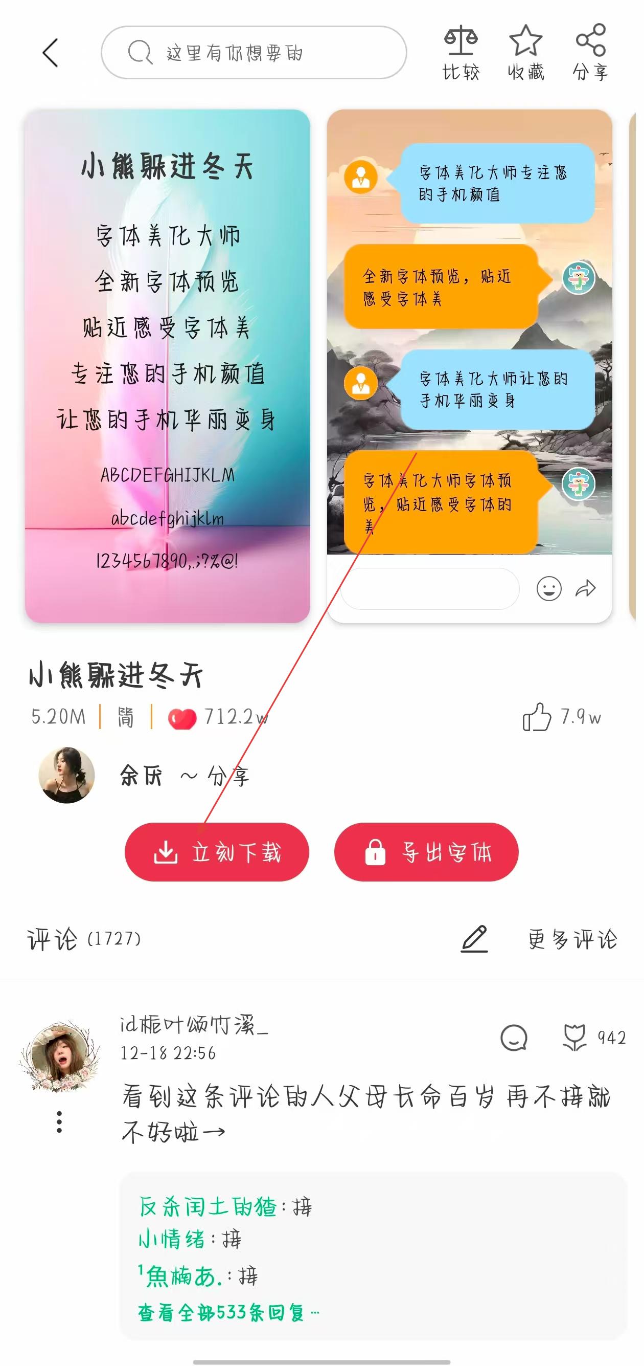 2、进入所选字体的详情页面,点击立刻下载按钮,等待字体下载完成。