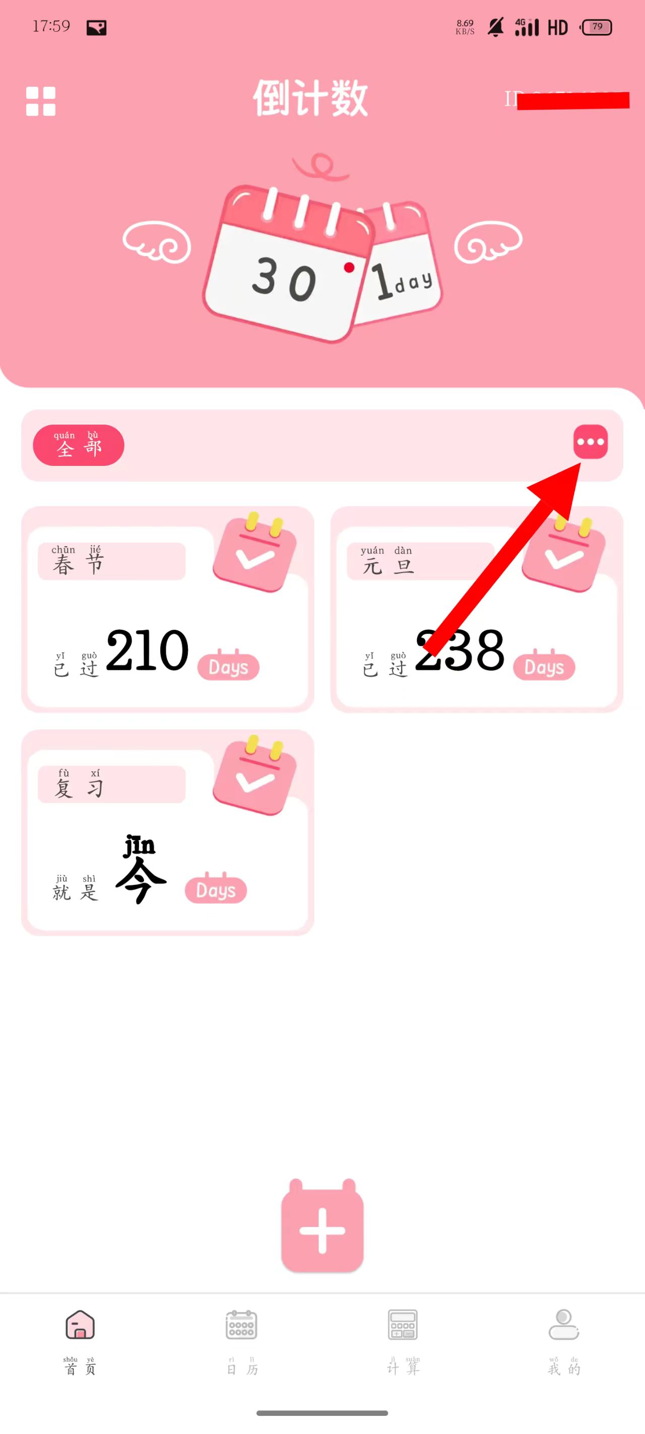 1、在倒计时首页,点击右上角,进入全部分类页面。