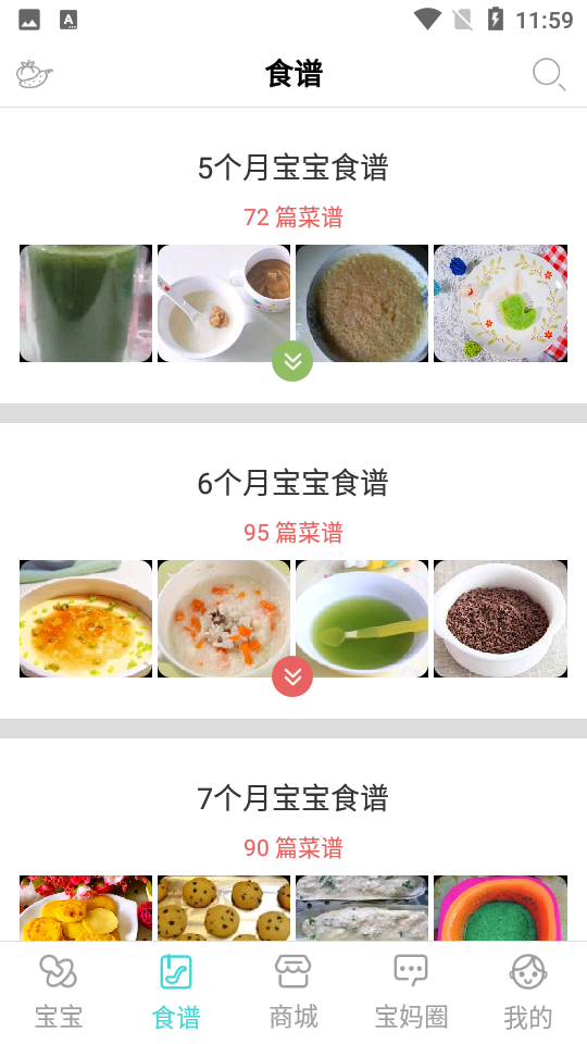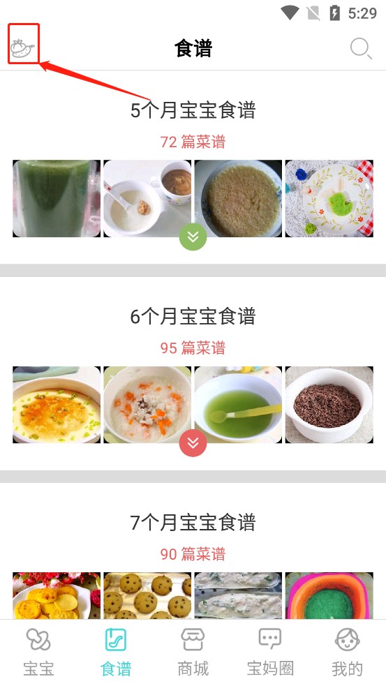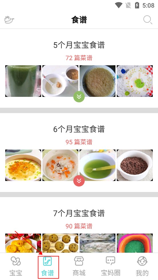 第二步:点击相应月份的宝宝食谱