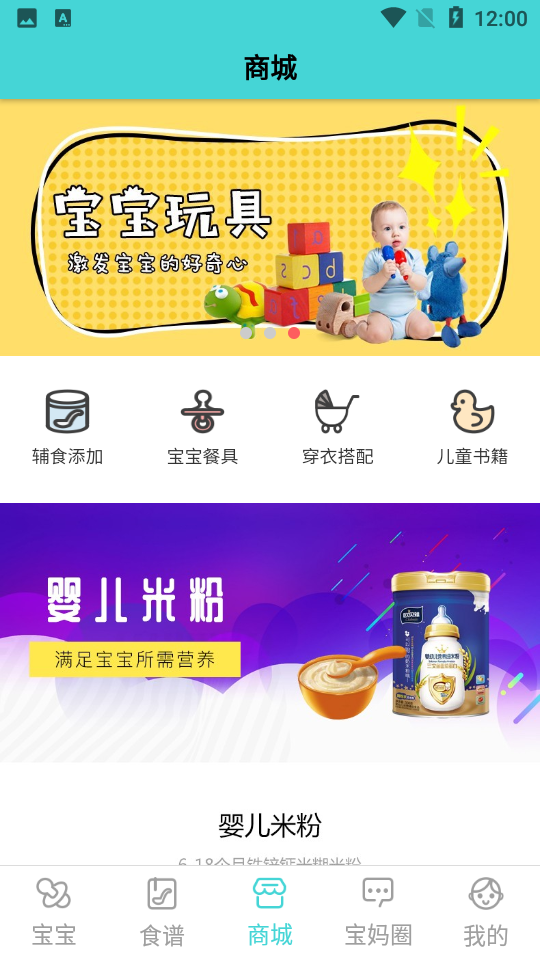 2、宝宝商城:提供宝宝成长所需的用品及食品的购物平台。