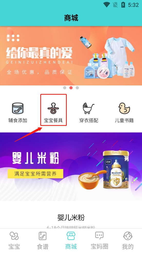 第二步:点击“宝宝餐具”,进入页面