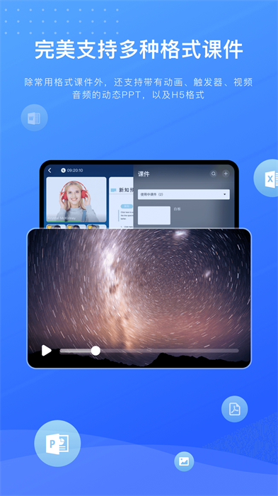 拓课云plus安卓版官方版是一个在安卓手机设备上使用的智慧课堂软件。支持学生和教师用户登录。提供了视频授课功能,可以在线进行白板授课、演示ppt课件等。可以用于中小学学校网上教学。此平台支持多种课件格式,包括PPT和视频等,满足教师在课堂上进行生动授课的需求。