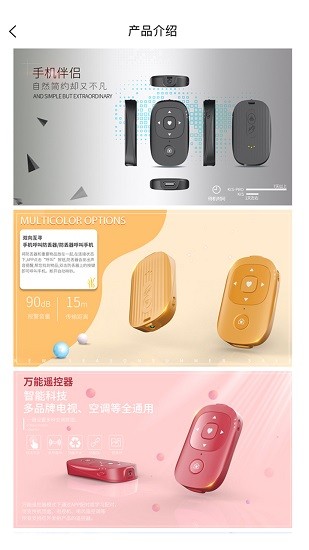 产品防丢,互相按下报警按钮模式,通过APP配对或学习配对,通过蓝牙与手机连接,手机即可解决各种问题,两者在蓝牙通讯距离之外发出报警,支持红外发射产品的遥控,解决各种问题,有着非常实用的功能。