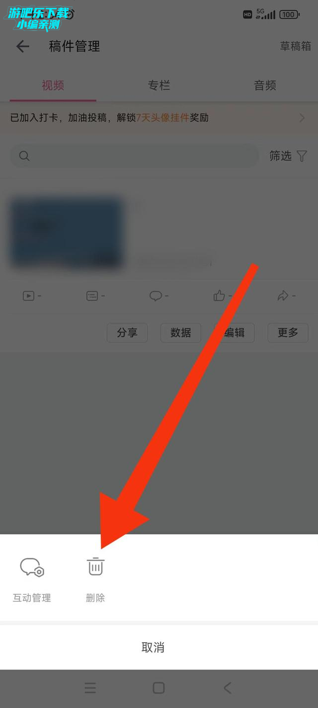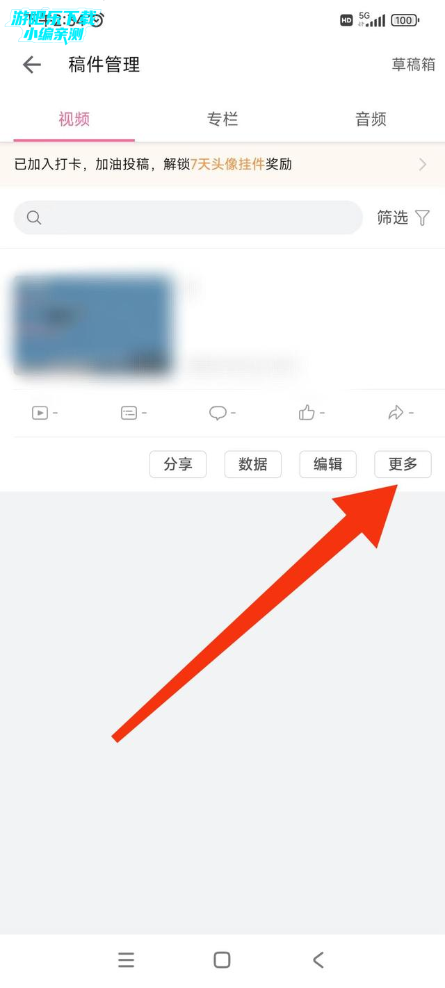 3.随后,在稿件管理里,找到要删除的作品,点击“更多”