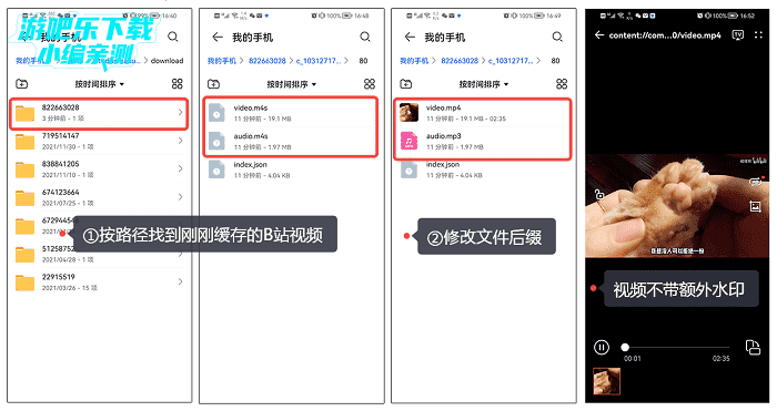 步骤3:把它们的后缀.m4s分别改成.mp4和.mp3;