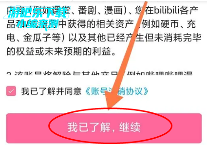 4、进入账号注销页面,确认账号后点击确认并继续注销完成操作。