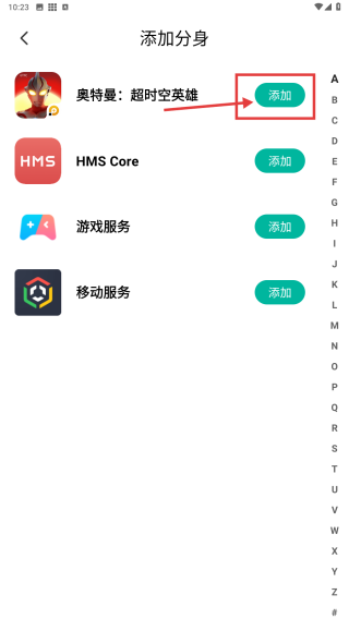 2、在添加分身页面,找到奥特曼:超时空英雄,点击右侧添加按钮。