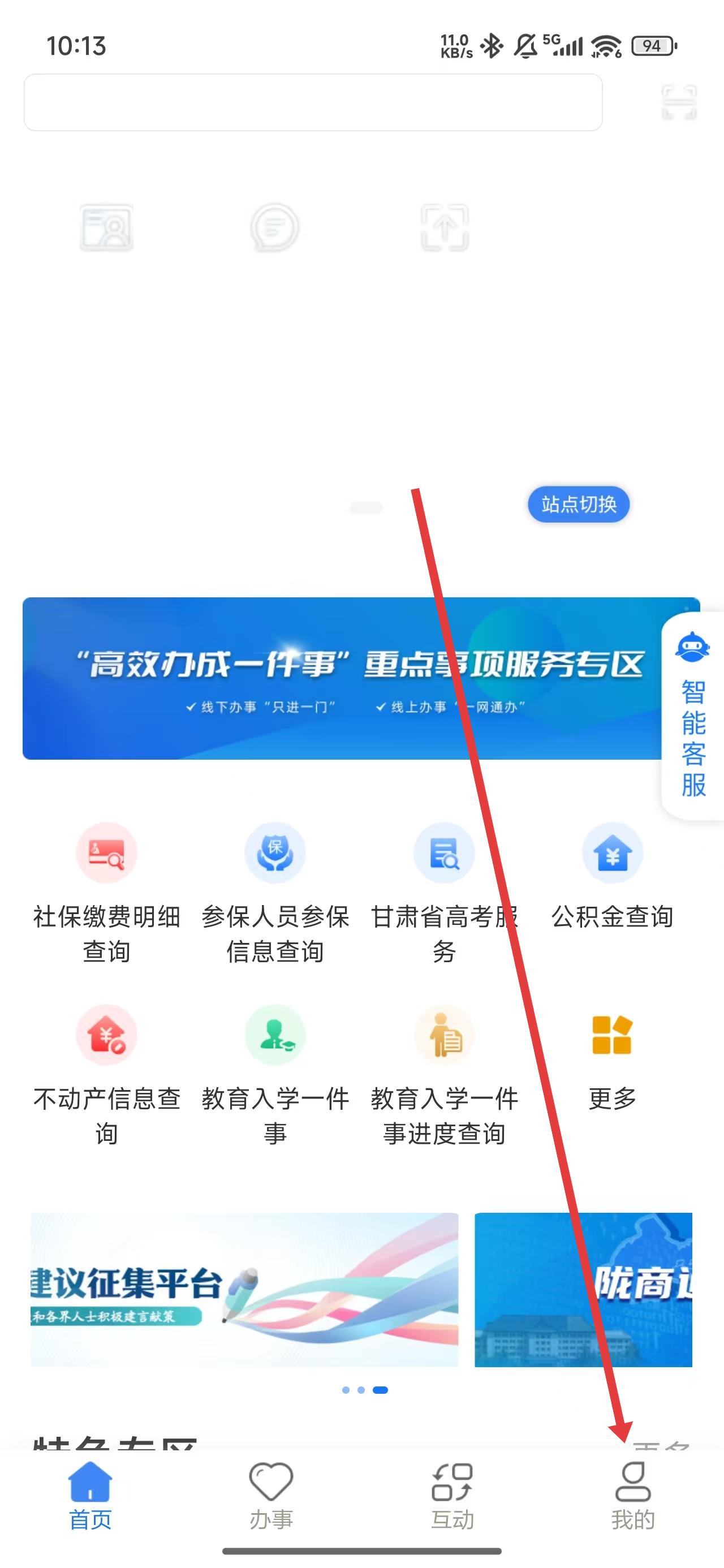 1、在甘快办首页中,通过点击底部我的按钮进入我的主页。