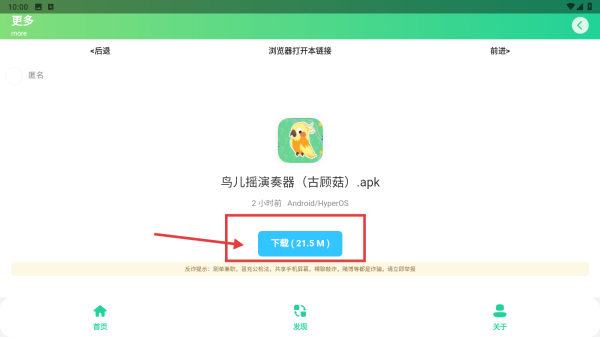 3、点击该文件对应的下载21.5M按钮,开始下载鸟儿摇演奏器安装包。