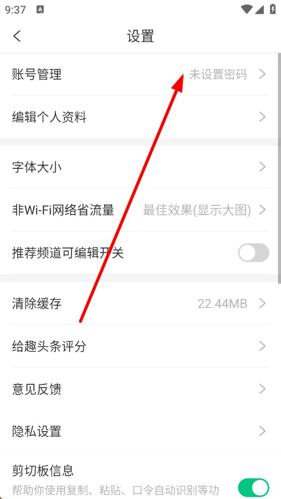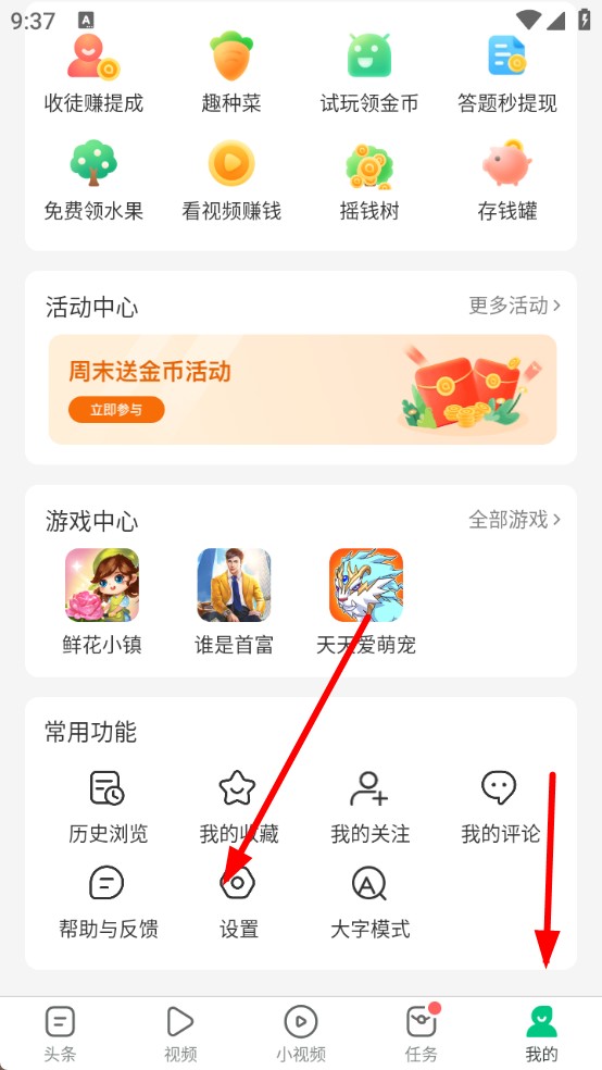 1、打开趣头条APP,进入我的,进入个人页面,在常用功能区域点击设置。