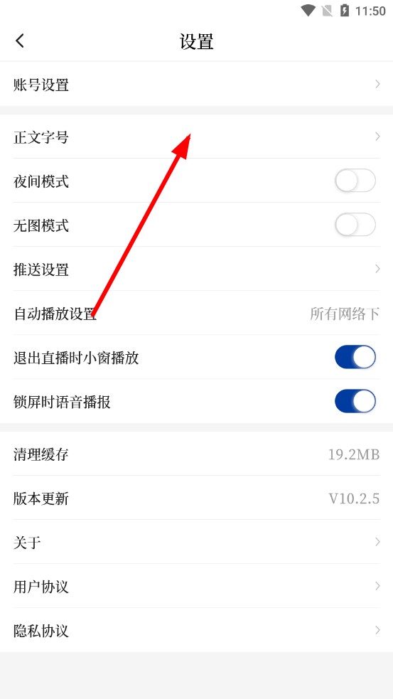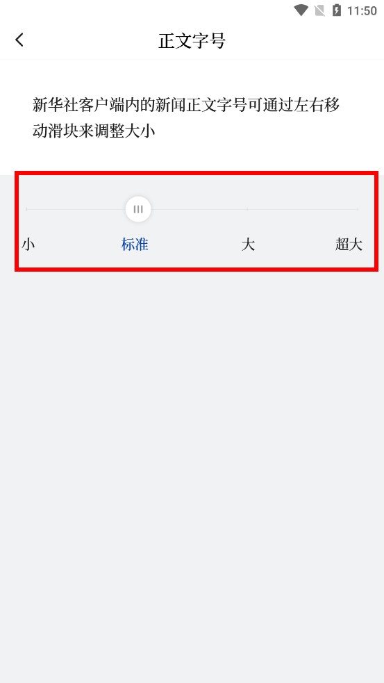3、进入正文字号设置页面后,通过左右移动滑块,即可调整字号大小。