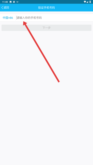 3、在页面中,点击输入框填写手机号码准备进行验证登录。