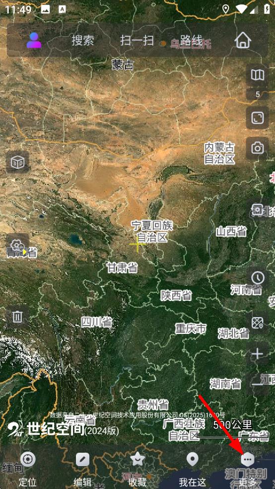 1、打开奥维互动地图,点击底部更多按钮,进入更多功能选项界面。