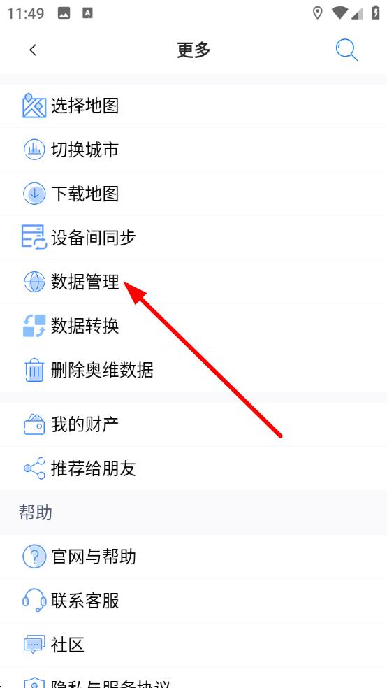 2、在更多功能列表中,找到并点击数据管理选项,进入数据管理操作页面。