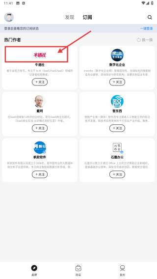 2、在发现页面的热门作者区,点击牛透社作者卡片,进入其主页。