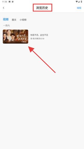 3、在浏览历史内会出现出一周内的观看过的视频,每个视频都标有之前观看的进度。