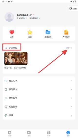 2、在我的个人中心页面,向下滑动找到浏览历史,点击更多进行查看。