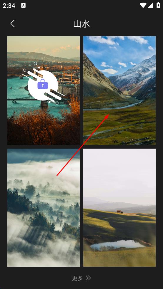 2、在山水壁纸列表里,挑选喜欢的山水壁纸,点击该壁纸进入详情展示页。