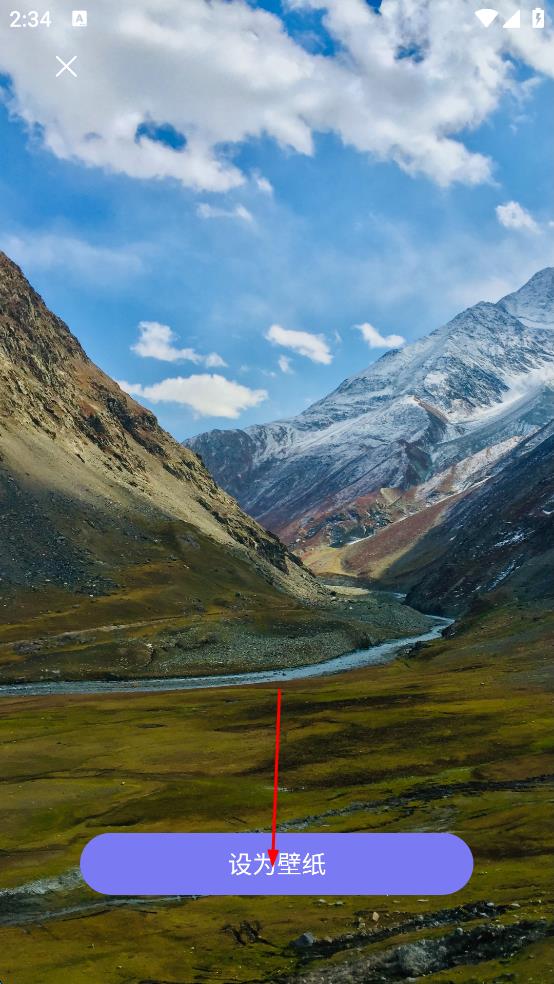 3、在壁纸详情展示页,点击下方“设为壁纸”按钮,按提示完成山水壁纸设置 。
