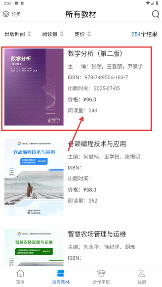 2、在所有教材页面,找到数学分析第二版教材条目,点击进入详情。