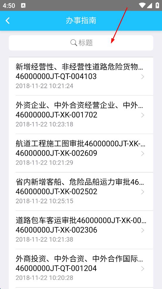 3、在办事指南列表页,可浏览或搜索相关办事指南内容,查看详细信息。